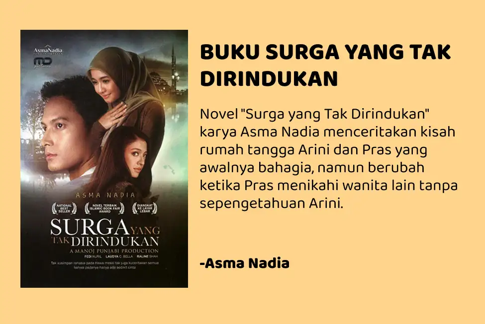 Gaya menulis Asma Nadia yang khas: puitis, emosional, dan sarat pesan moral, menjadikan buku ini bacaan wajib bagi pencinta novel religi dan motivasi.